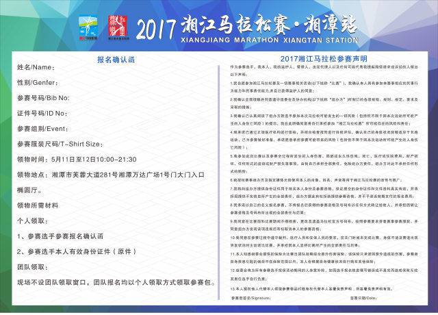 注:必须凭“报名确认函”及“身份证原件”领取参赛物资!!