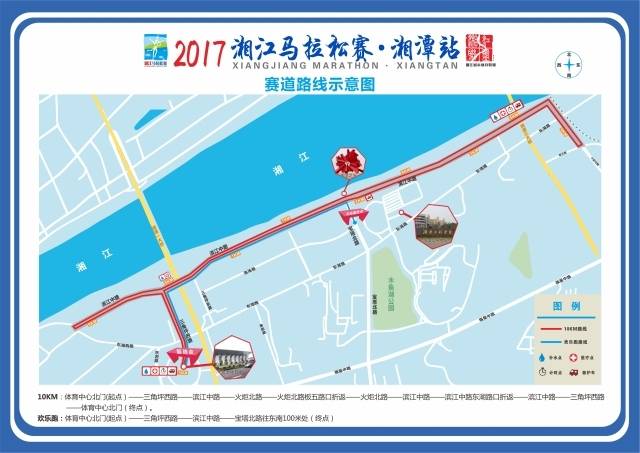 2017湘江马拉松赛·湘潭站比赛项目在原有的10公里城市赛的基础上,顺应广大市民高涨的参与需求,新增设欢乐跑项目,打造娱乐、亲子的主题跑,与家人一起跑出趣;