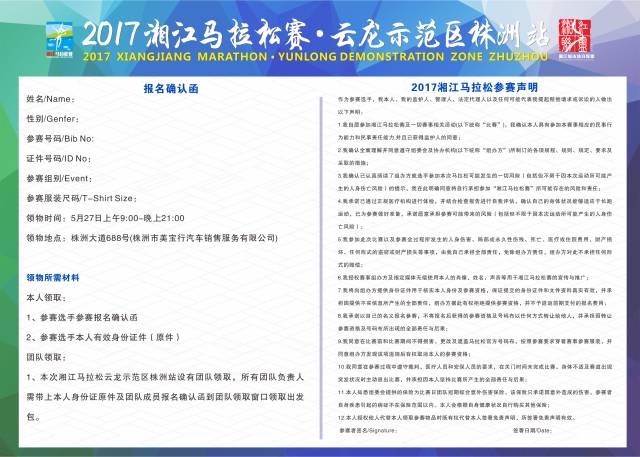注:必须凭“报名确认函”及“身份证原件”领取参赛物资!!