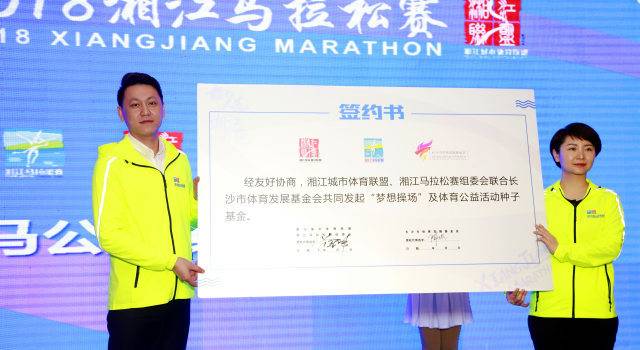 本届湘江马拉松赛积极响应主题,在公益的事业上也同样敢为人先·与爱奔跑,从本届赛事开始湘江城市体育联盟、湘江马拉松赛组委会将联合长沙市体育发展基金会共同发起“梦想操场”及体育公益活动种子基金。组委会为成功报名参赛的选手捐赠10元现金给长沙市体育发展基金会,此项金额将作为梦想操场及相关公益活动的种子基金,号召全社会关注体育公益事业,为贫困地区的学校援建操场、跑道,传递跑步的热情及发展的希望,同时将为每位湘马报名的参赛选手发放公益证书。