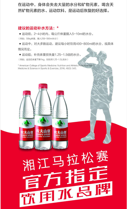 也不是没有好消息。随着跑友们的呼声越来越高,同时也是国内体育赛事不断寻求与国际接轨的内在需求,目前国内的一些大型马拉松也开始对赛事补给中提供的饮用水进行升级,采用含有天然矿物元素的天然水或天然矿泉水作为比赛用水。