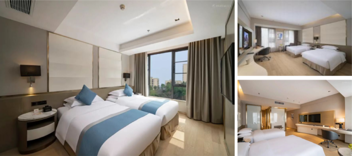 2、除新中式、双间房退房时间延迟至15:00外,其他房间退房时间为14:00;
