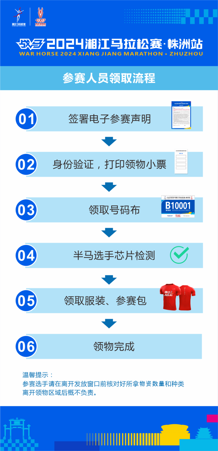 2、赛事当日(3月31日)不提供领物服务,未在规定时间内领取参赛物资的选手,将视为主动放弃领取参赛物资及参赛资格。
