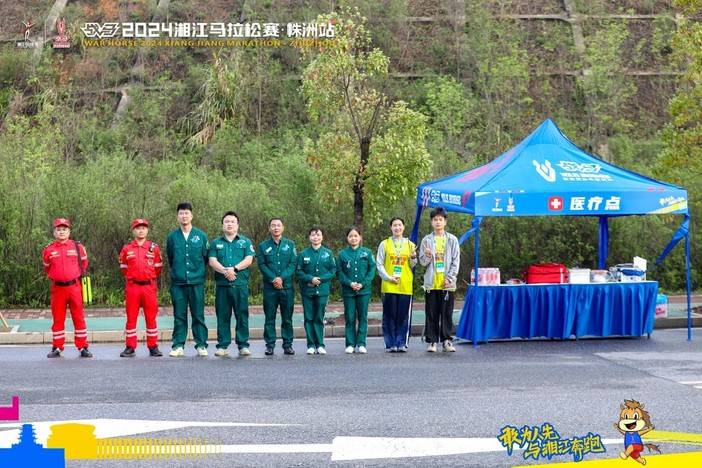 比赛全线配置急救医疗点、急救跑者、竞赛志愿者、医疗观察志愿者、湘英救援队救援人员和裁判员,为参赛运动员提供医疗救援、电子计时、存取衣、更衣、移动厕所、补水、能量补给、摆渡、收容等服务,守护赛道上的每一位跑者,全力保障跑者顺利、安全完赛。