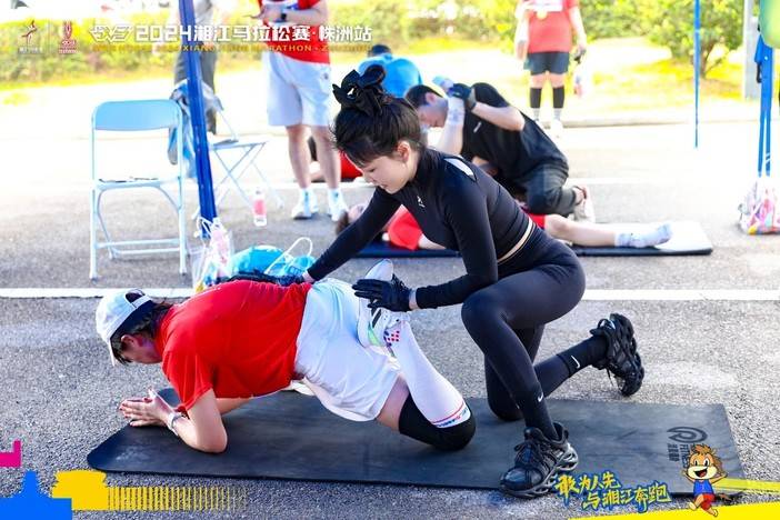 来自湖南中医药高等专科学校护理学院的医疗观察志愿者们,心系每一位参赛运动员,用自己的细心与耐心助力每一位跑者安全完赛。 赛事保障上,为应对高温天气,使用雾炮车进行喷淋降温,赛后设置冰池放松区与拉伸恢复区,助力跑者身体机能恢复。