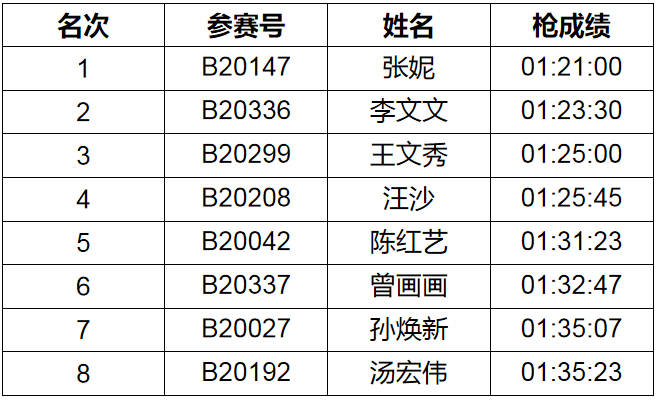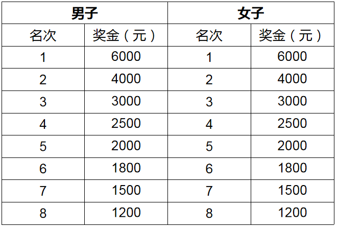半程马拉松前八名以枪声成绩录取,发放奖金,奖励标准如下: