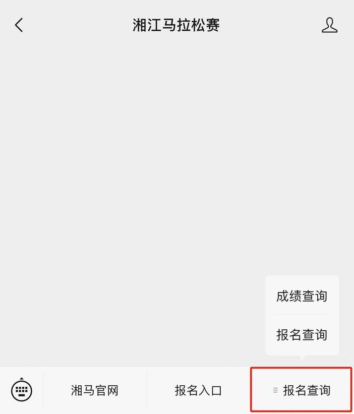 关注微信公众号【湘江马拉松赛】,点击【下方菜单栏--报名查询--输入证件号查询】,如下图。