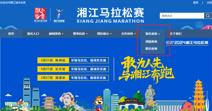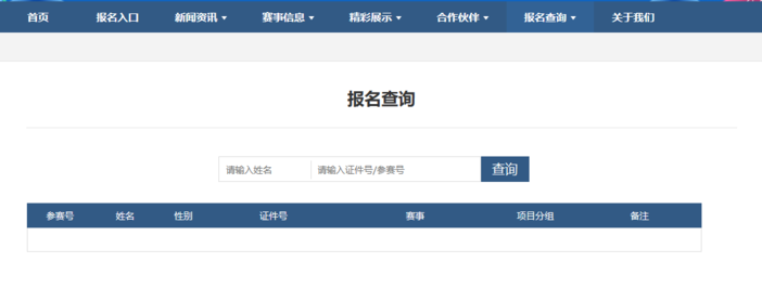 打开【湘江城市体育】官网www.hnxjty.cn,点击【报名查询--输入证件号查询】,如下图。