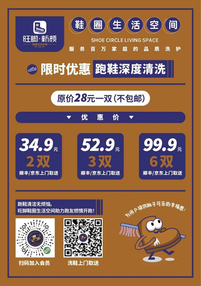 4月21日,1万名跑者将齐聚于战马2024湘江马拉松赛·长沙站(第三届长株潭融城半程马拉松赛)燃情奔跑。一场酣畅淋漓的奔跑后,原本干净的跑鞋可能沾上了脏污、汗水,若不及时清洁,极其容易滋生细菌。为给跑者提供更好的参赛体验,给疲惫的双脚一处整洁舒适的归属,旺脚鞋圈生活空间为跑友提供限时优惠!