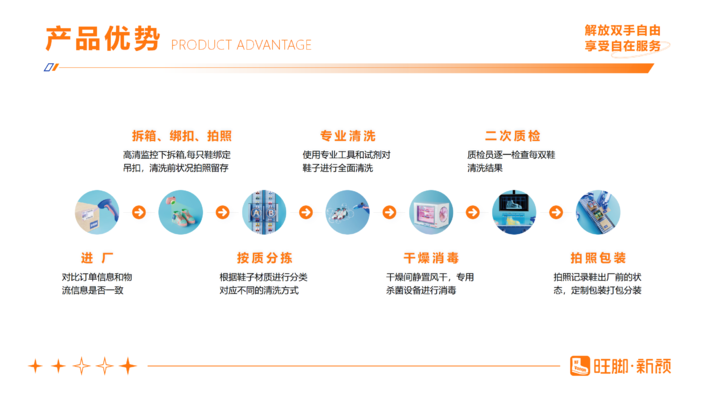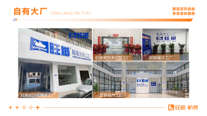 旺脚鞋圈生活空间,是一家颠覆传统洗护行业和鞋业的创新公司。以互联网+实体思维为指导,打造了一个集洗、 修、购、养、收五维一体的鞋圈生态生活空间。致力于成为行业综合服务先锋品牌商。采用智能中央洗护工厂供应链管理,实现了从原料采购到成品 出厂的全程自动化,大大提高了生产效率和产品质量;拥有自主研发的大型设备生产基地,联合七国化工实验室紧密合作,共同调试出最适宜的清洗剂配方。我们深知清洁的重要性,因此致力于提供最高品质的清洗剂产品,以满足不同类型鞋子的特殊需求。