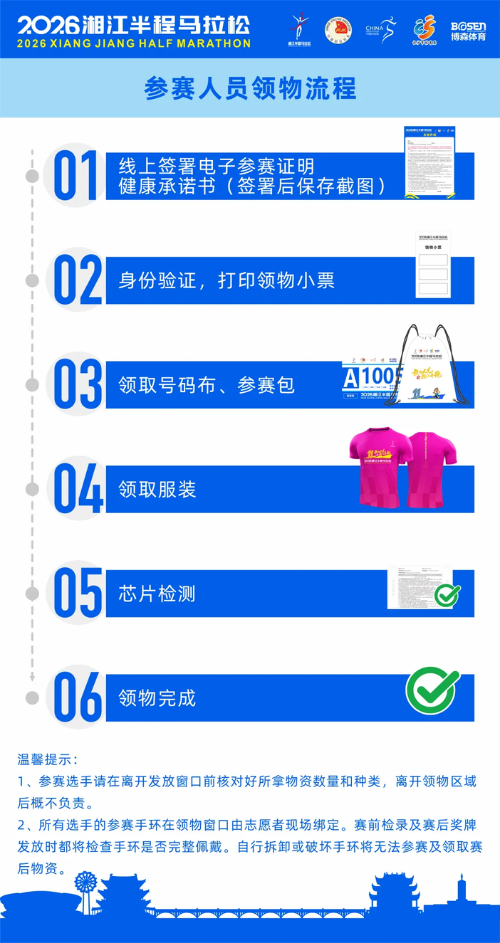 2、参赛物品领取高峰集中在4月25日全天,为减少排队等待,建议长沙市本地选手尽量在4月24日前往领取个人参赛物品。